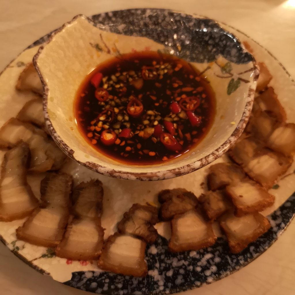 We started with their pork belly. I would have wished the fried rice which I ordered as well. I asked for it but they did not understand. They delivered it – even I asked several times – with the Tofu dish. Anyway, the slightly crispy pork belly was delicious.