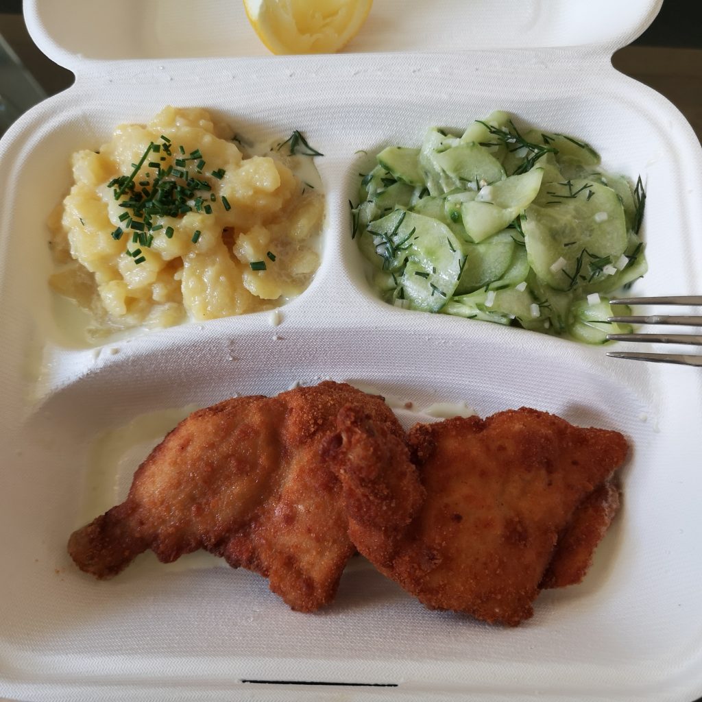 Take Away @ Lutter&Wegner, Schlüterstrasse CRAdmin 6 years ago Backhendl Spread the love We were hungry for Austrian kitchen Wiener Schnitzel Both, the Backhendl (10 €) and the Wiener Schnitzel (10 – 15 €, depending on size) were good!