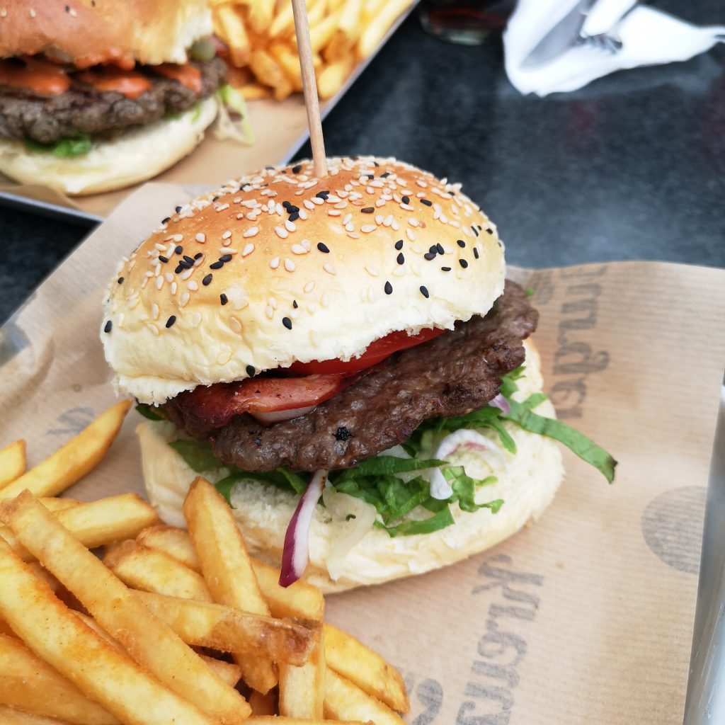 When you see a photo like this, you really get hungry for a hamburger with fries. We ordered the Kreuzburger with bacon.