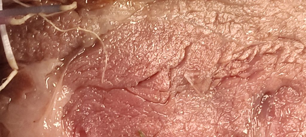 After that came a rather successful “salad” course of the various betes. Small, but nice. With the salad came a few slices of very good bread and lathered “parsley butter”.